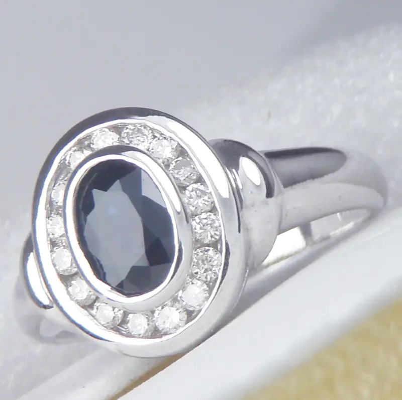 Nhẫn Halo 14k Sapphire Diamond Band Ring USA Hàng chính hãng của Mỹ sản xuất