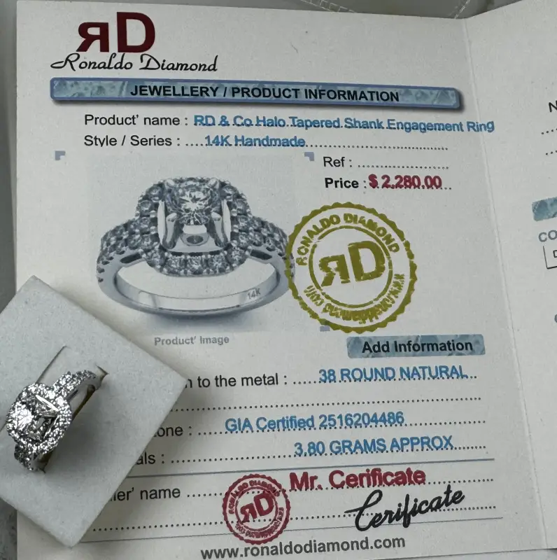 Nhẫn Nữ RD Halo Diamond 14k Tapered Shank Ring USA Ladies hàng chính hãng Mỹ. Mới cứng cựa,Nguyên zin 100% và còn Giấy CN BH mua hàng zin