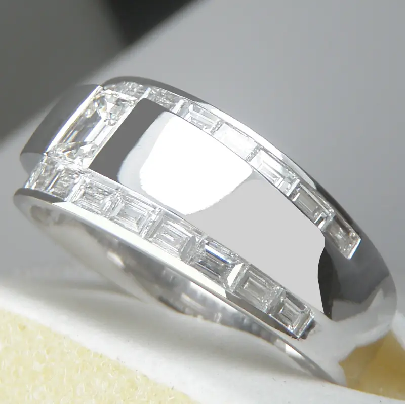 Nhẫn Unisex 14k Emerald Cut Diamond Band Ring Design Italy Hàng của