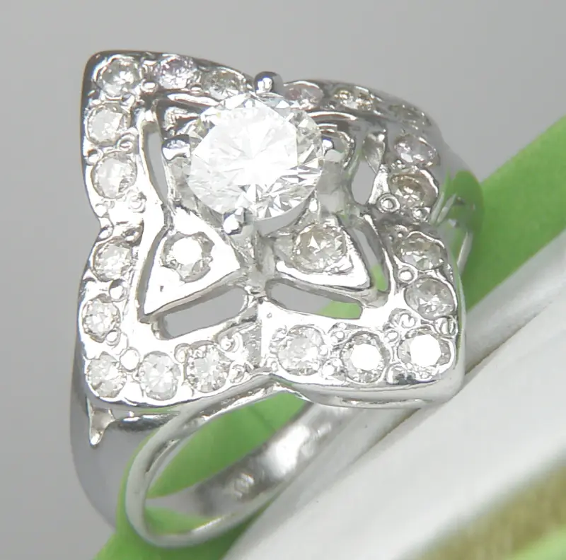 Nhẫn Nữ Antique Style Cluster Diamond 14k Ring cS Hàng Mỹ sản xuất, Đã qua sử dụng Hiện còn Đẹp