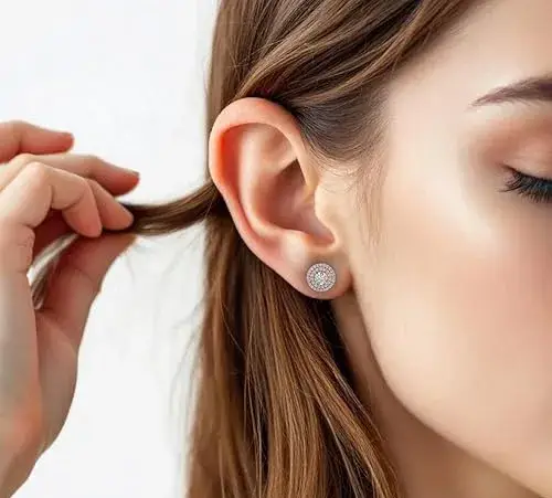 Hoa Tai Double Halo 18k Diamond Earrings Italy Hàng chính Hãng của Ý. Cực Mới Long Lanh