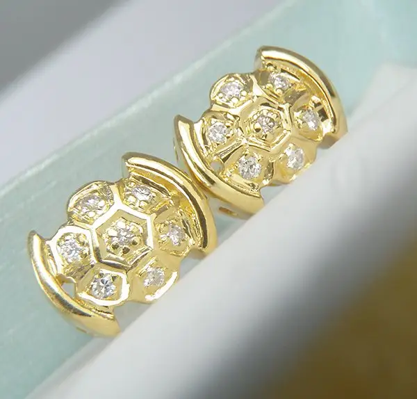 - Vỏ bằng vàng 18k đính 14 viên kim cương Thiên Nhiên Loại Sạch đẹp nước trắng chiếu sáng rất Lấp Lánh