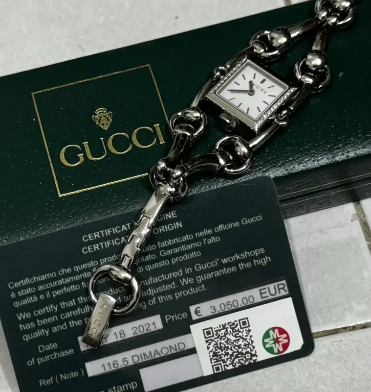 Đồng hồ Nữ Gucci Signoria Diamond 116.5 Quartz Ladies Watch Swiss Made hàng chính hãng Thụy Sĩ sản xuất, nguyên zin 100%. Hình thức Rất mới đẹp nên làm quà tặng khá ok Còn Hộp và thẻ BH mua hàng zin