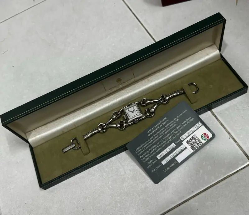 - Máy Gucci Thụy Sĩ sử dụng Pin zin theo đồng hồ : đang chạy tốt.