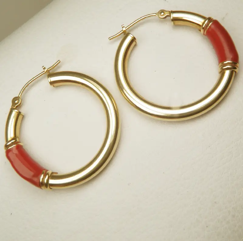 https://ronaldodiamond.com/mb-red-enamel-work-round-tube-hoop-snap-earrings-in-14k-yellow-gold.html