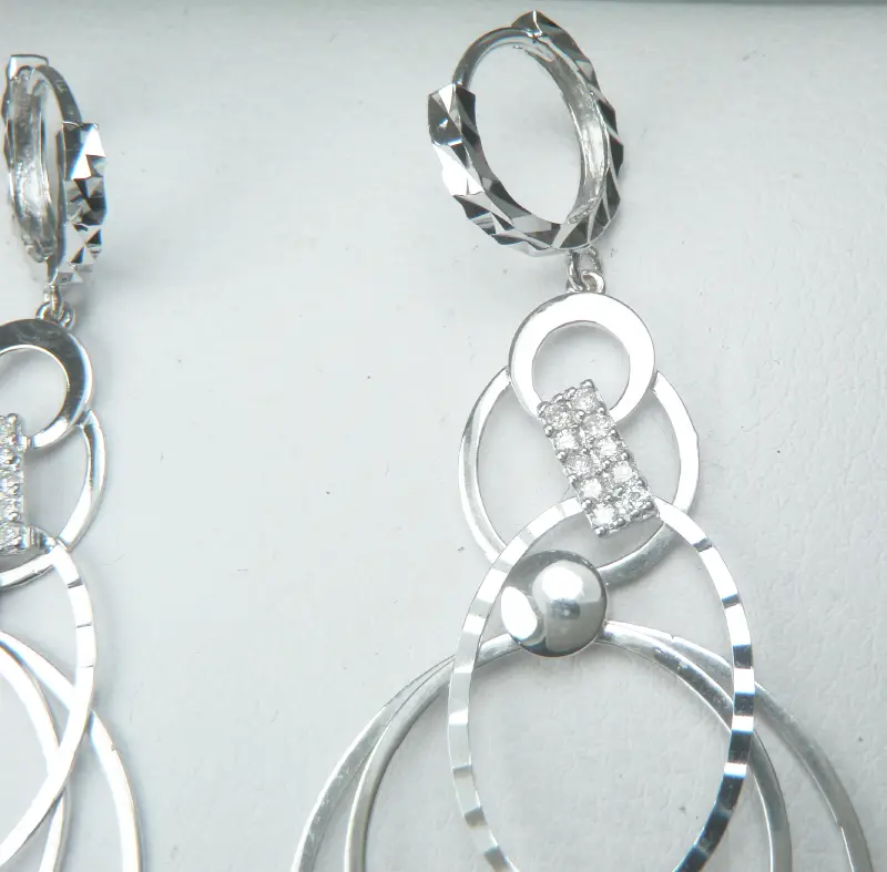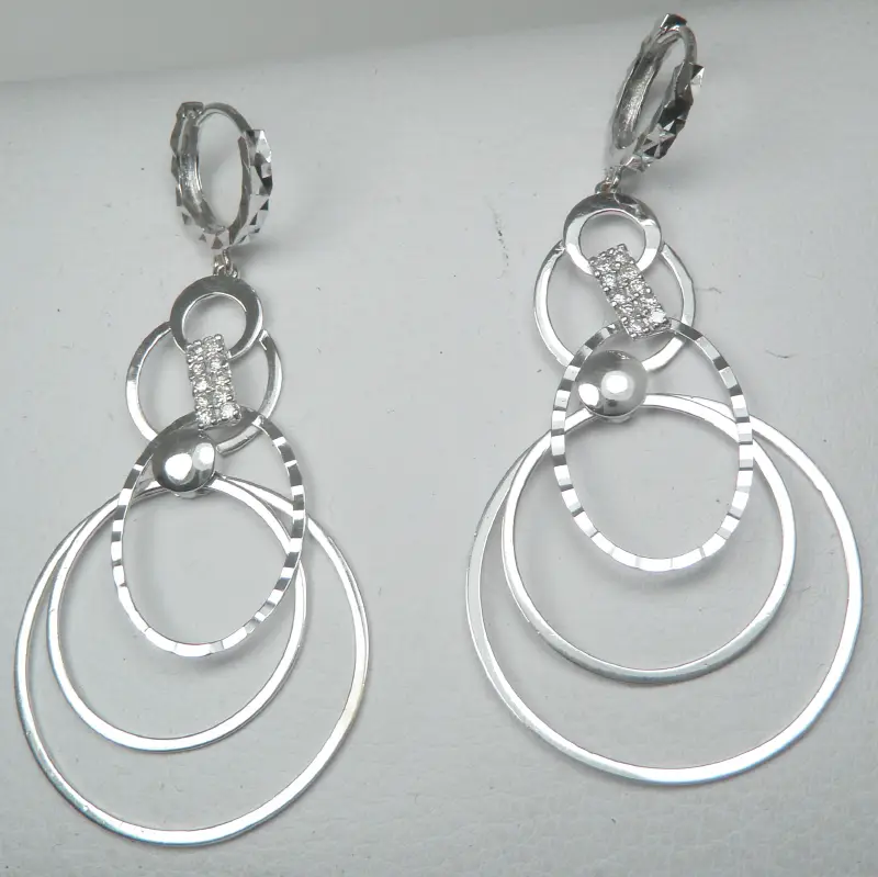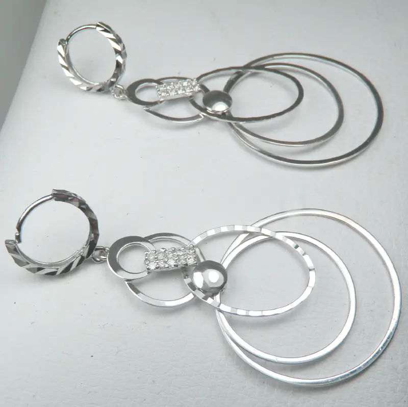 Đôi Bông tai 18k Diamond Drop Dangle Circles Earring Women Design Italy hàng của Ý Thiết kế, Đã qua sử dụng những vẫn Mới Đẹp nguyên vẹn