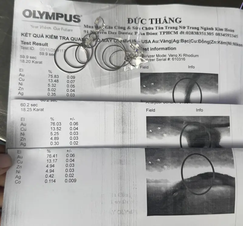 - Bằng vàng 18k ( phổ Au760 đã có hình chụp phổ tới 3 điểm khác nhau ) đính 20 viên Kim Cương Thiên Nhiên 1Ly3 - 1Ly4 Loại đẹp chiếu sáng Lửa Lấp Lánh