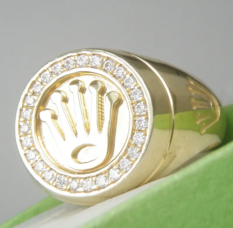Nhẫn Style Rolex 10k Diamond CZ Pinky Ring Hàng của Mỹ sản xuất tại Á Châu, Đã qua sử dụng nhưng còn Đẹp và nguyên vẹn