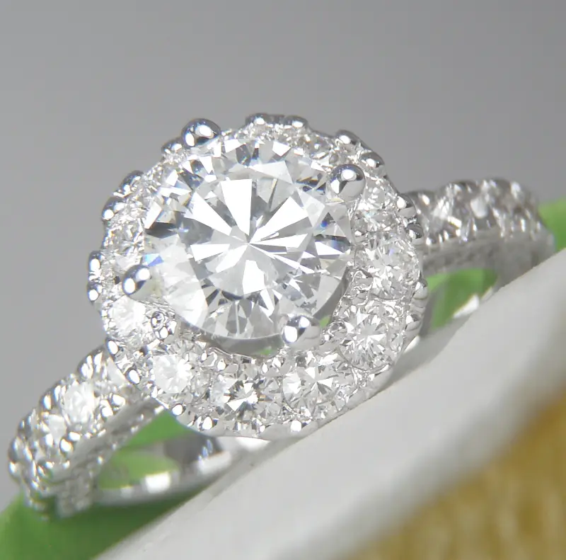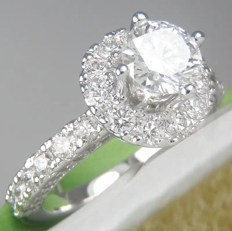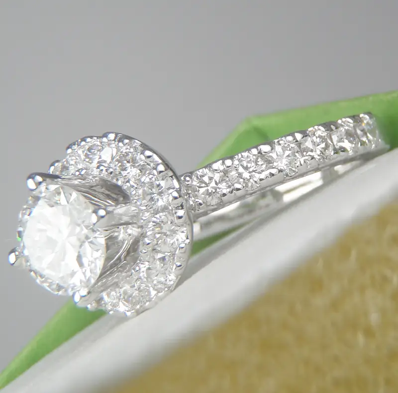 Nhẫn Nữ Diamond 18k VIP Halo Engagement Ring LBcLzs Hàng của Mỹ sản xuất tại Á Châu, Đã qua sử dụng nhưng còn Đẹp Long Lanh và nguyên vẹn như Mới