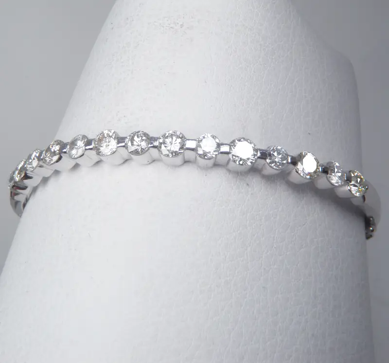 Vòng đeo tay 14k Diamonds Slant Bracelet EzE USA hàng của Mỹ Thiết kế & Á Châu sản xuất. Đã qua sử dụng nhưng còn Đẹp Long Lanh và nguyên vẹn