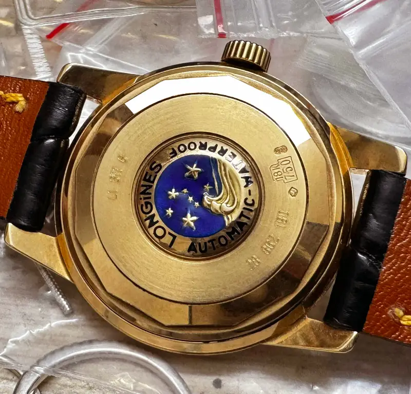 - Vỏ bằng vàng Hồng đúc 18k chính hãng Longines : Logo cực Mới đẹp, béng cạnh