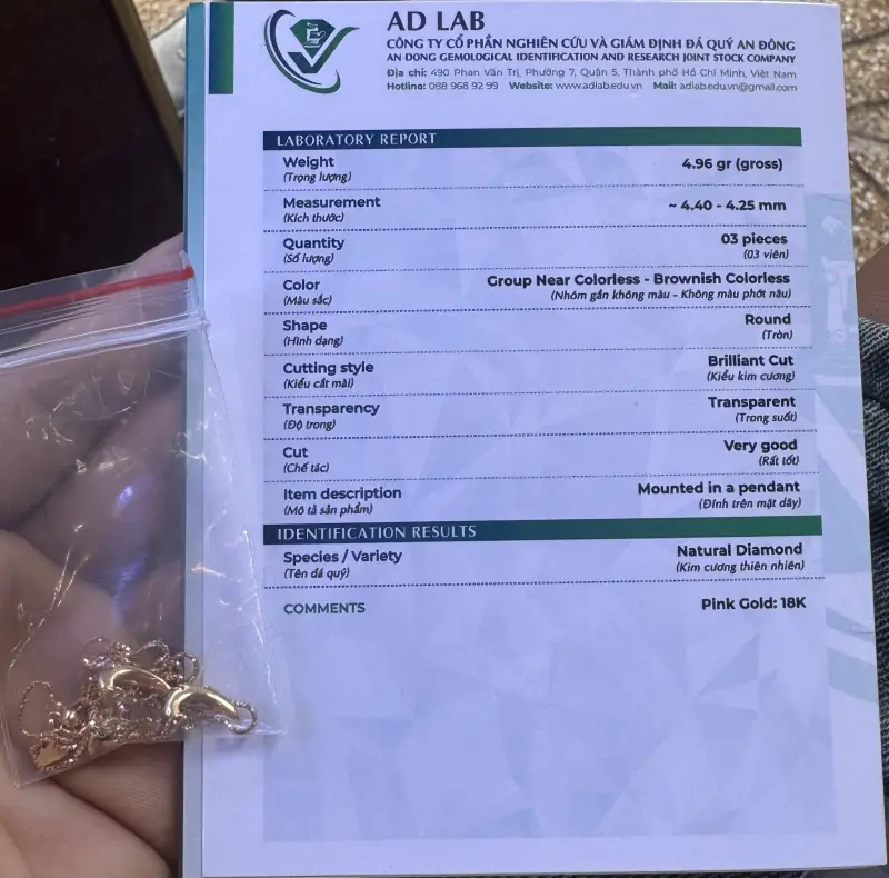 đẹp gắn 3 viên kim cương Thiên Nhiên từ 4Ly25 đến 4Ly4 loại Sạch Đẹp Si – i1 với
