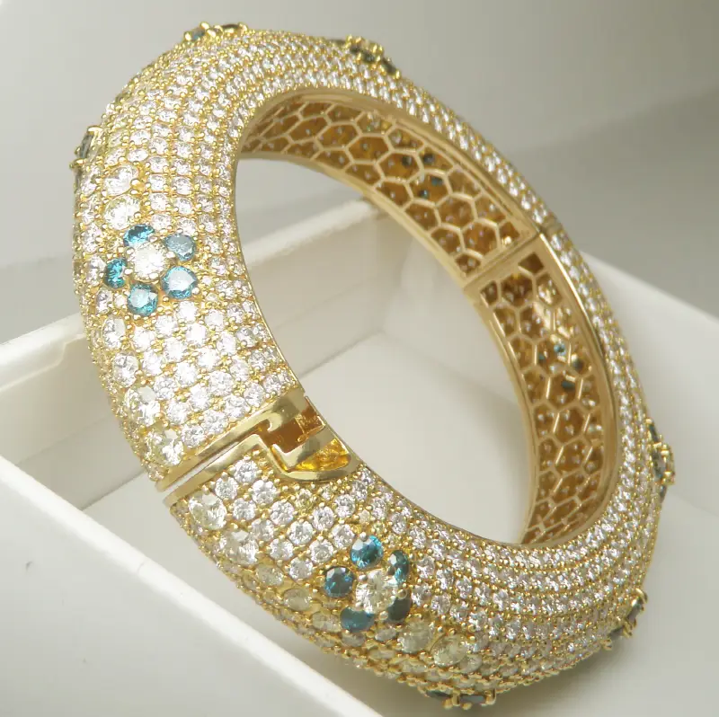 Vòng đeo tay 14k Diamonds Dome Bracelet Bangle Design USA Đã qua sử dụng nhưng còn Đẹp Long Lanh và nguyên vẹn, có sẳn giấy kiểm định vàng và Kim cương Thiên nhiên