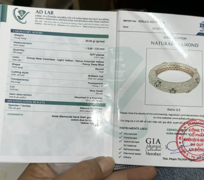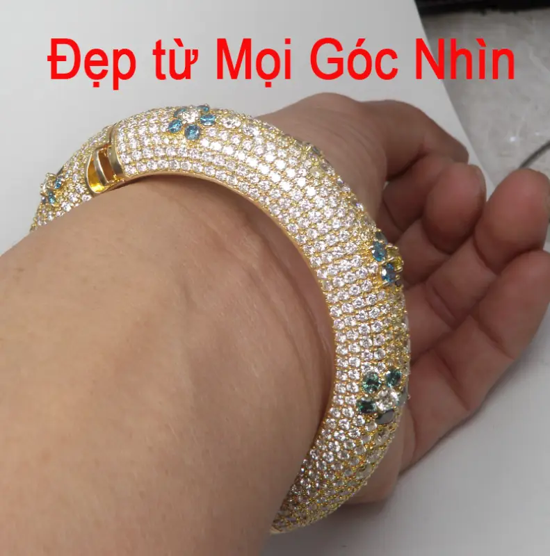 - Chất liệu bằng vàng 14k đính 1077 Viên Kim Cương Thiên Nhiên Đẹp Lung Linh chiếu sáng Rực lửa Lấp Lánh chói cả mắt