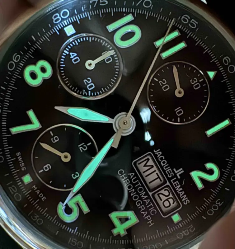 - Máy mới Đẹp Long Lanh tự động Jacquest Leman 7750 Thụy Sĩ 6 kim 2 lịch với chức năng bấm nút đếm thời gian Thể Thao zin theo đh đang chạy Rất tốt