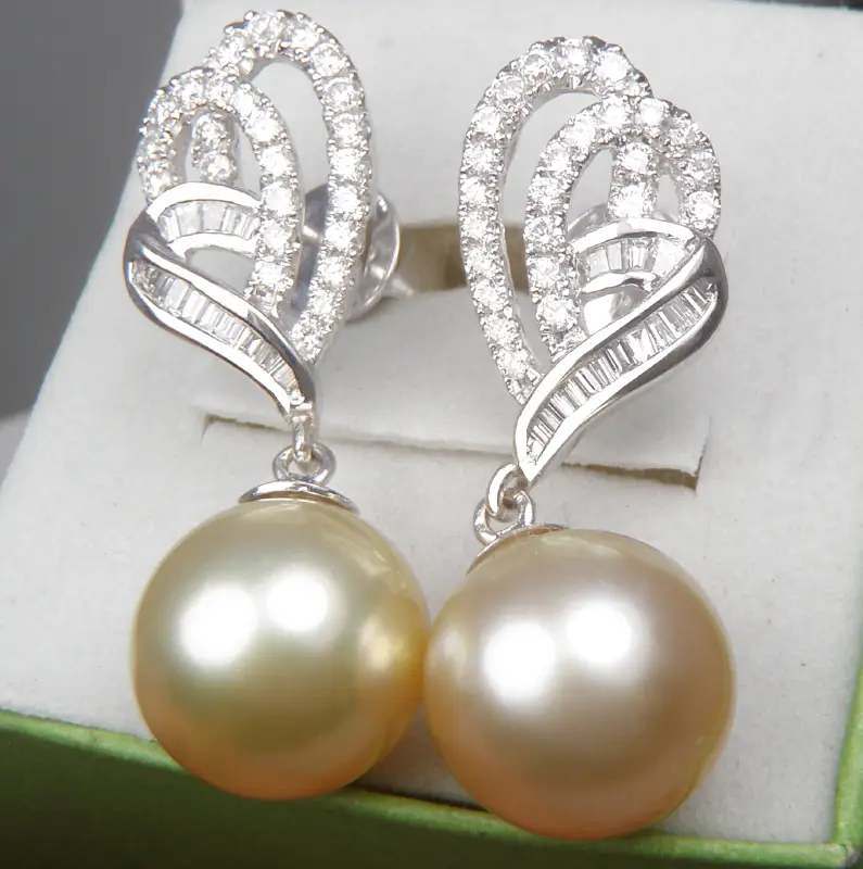 Đôi Bông tai 18k Baguette Diamond & Pearl Earring Lg Women France hàng của Pháp sản xuất, zin 100% Hàng đã sử dụng nhưng vẫn đẹp nguyên vẹn