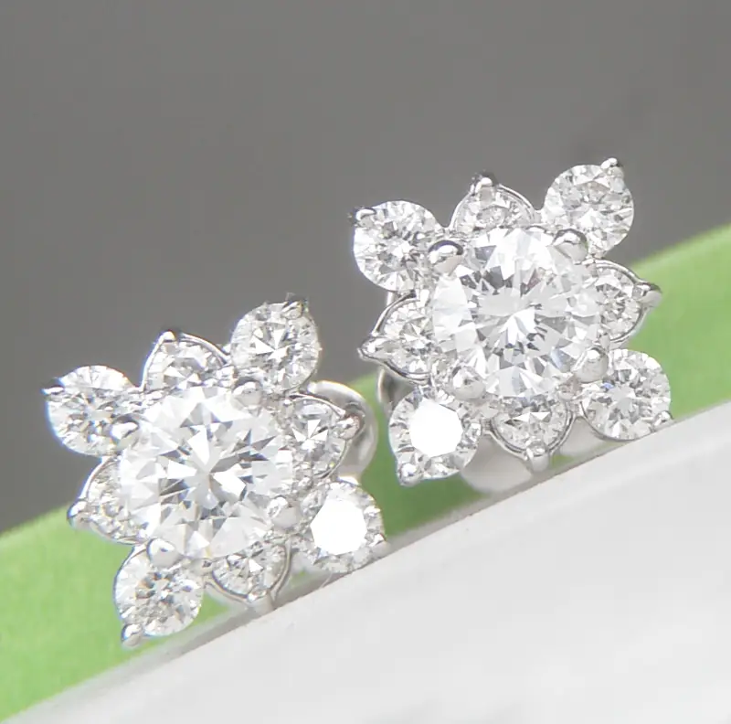 Đôi Bông tai 14k Diamond Halo Flower Earring Women Los USA hàng của Mỹ sản xuất, Hàng đã sử dụng nhưng vẫn đẹp nguyên vẹn