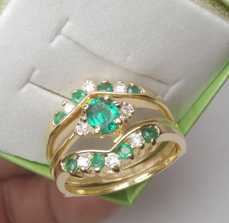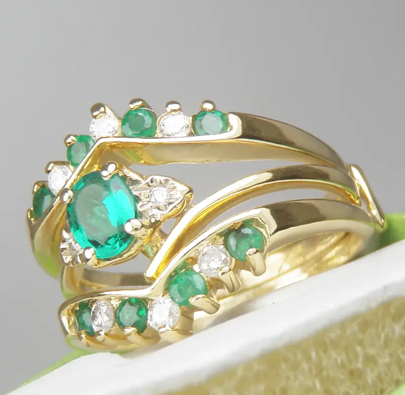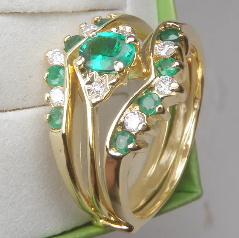 Nhẫn Nữ Cluster Diamond Emerald 14K & 9K Set Ring iofs Hàng của Úc và Mỹ. Nguyên zin 100% Hàng đã sử dụng nhưng vẫn đẹp nguyên vẹn