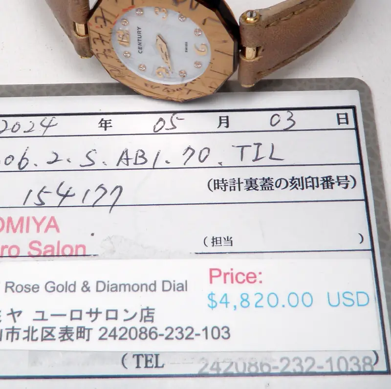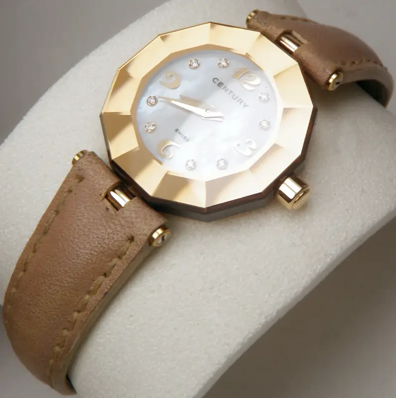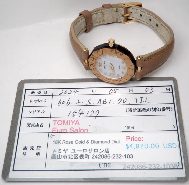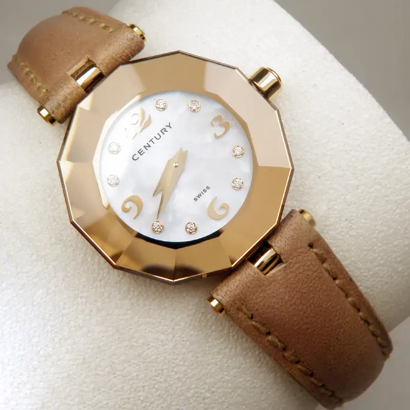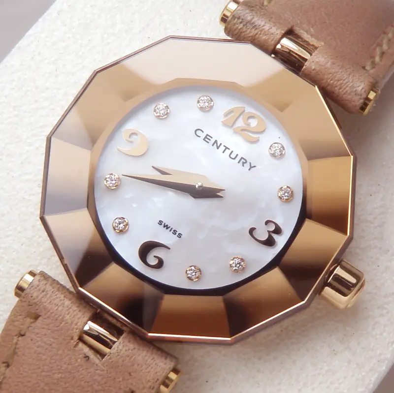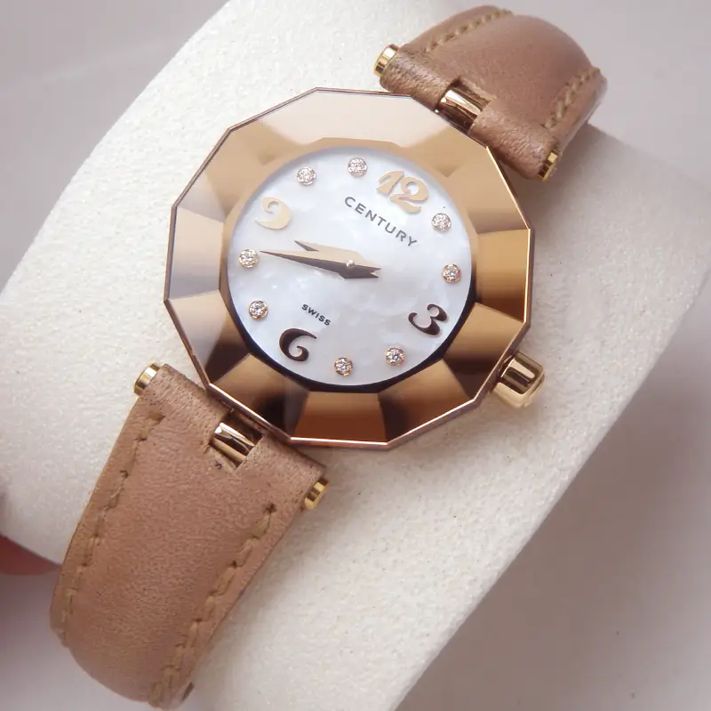 Đồng hồ Nữ Century 18K Rose Gold Diamond IQ+ Quartz Swiss Made hàng chính hãng Thụy Sĩ sản xuất. Nguyên zin Hình thức rất mới đẹp Long Lanh