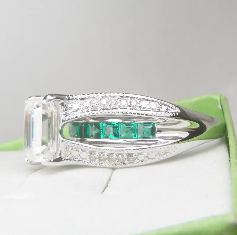 Nhẫn Nữ 9k Diamond Emerald Ring zS Hàng chính hãng Úc sản xuất, nguyên zin 100% Đã qua sử dụng nhưng còn Đẹp Long Lanh và nguyên vẹn