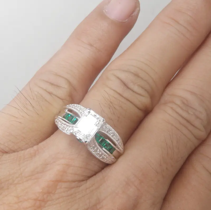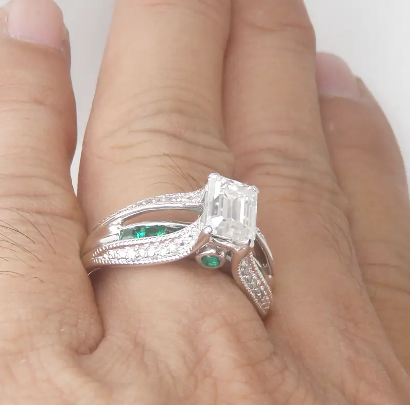 Phối với 9 viên Emerald xanh Lục và 2 viên tròn 1Ly8