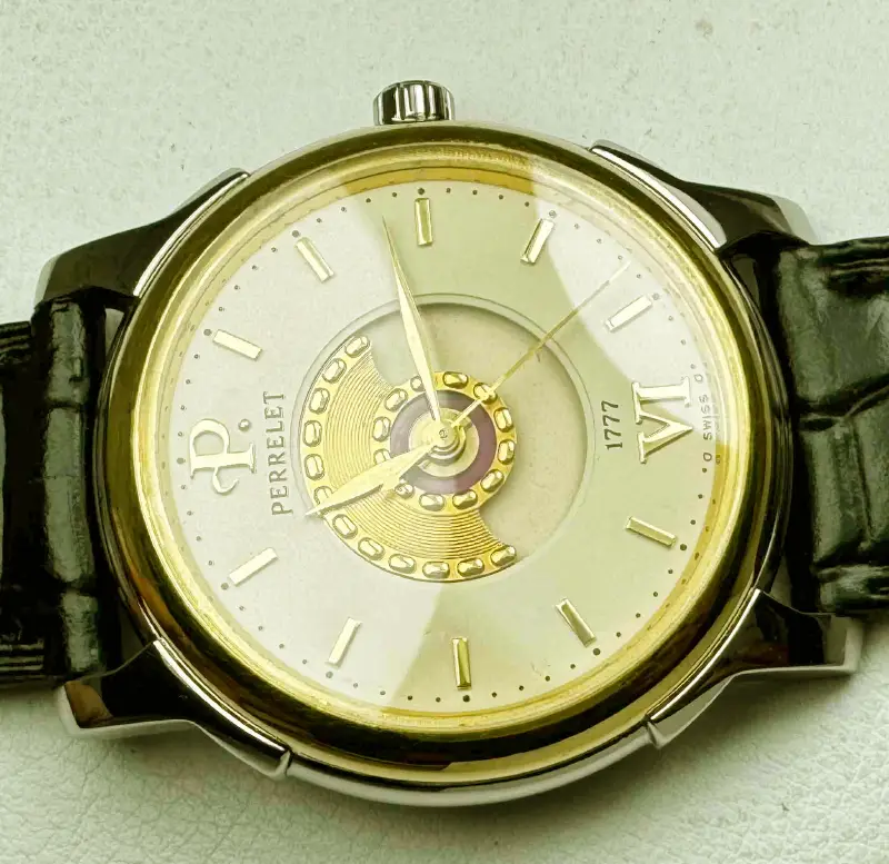 Đồng hồ Perrelet 1777 18K Gold Medal and Bezel Automatic Swiss Men Watch hàng chính hãng Thụy Sĩ sản xuất. Rất mới đẹp và Nguyên zin 100% trừ dây da và khóa