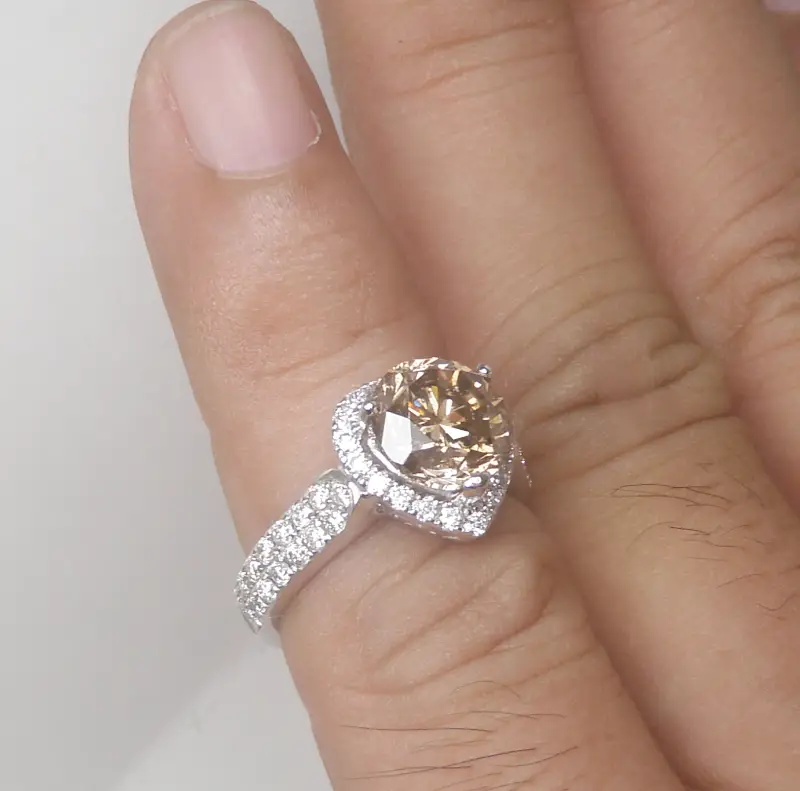 + Hột chủ kim cương Thiên Nhiên 7Ly65 x 7Ly63 i1 mắt thường nhìn khá dễ thương và màu Nâu chiếu rất sáng Lấp Lánh