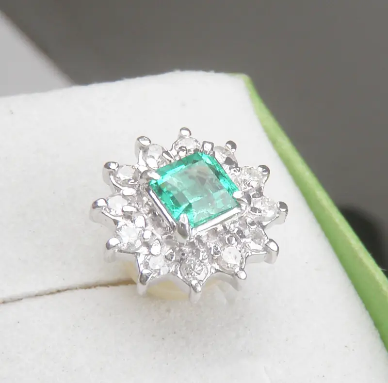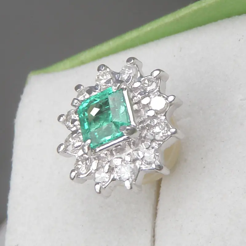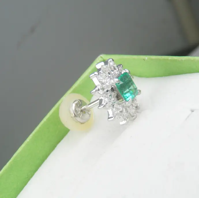 1 chiếc Bông tai Lẻ Platinum Emerald Diamond Halo Earring Women zL Design Italy hàng của Ý Thiết kế, sản xuất tại Nhật, Đã qua sử dụng những vẫn như Mới Đẹp nguyên vẹn