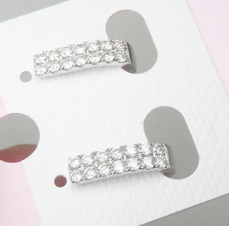 Đôi Bông tai 18k Diamond Two-Rows Earring Women BB Design Italy hàng của Ý Thiết kế, Đã qua sử dụng những vẫn như Mới Đẹp nguyên vẹn