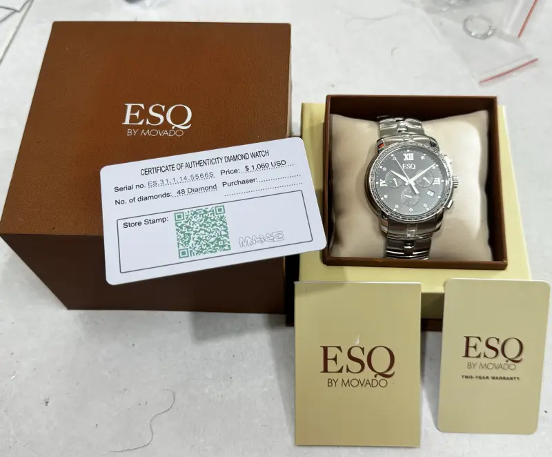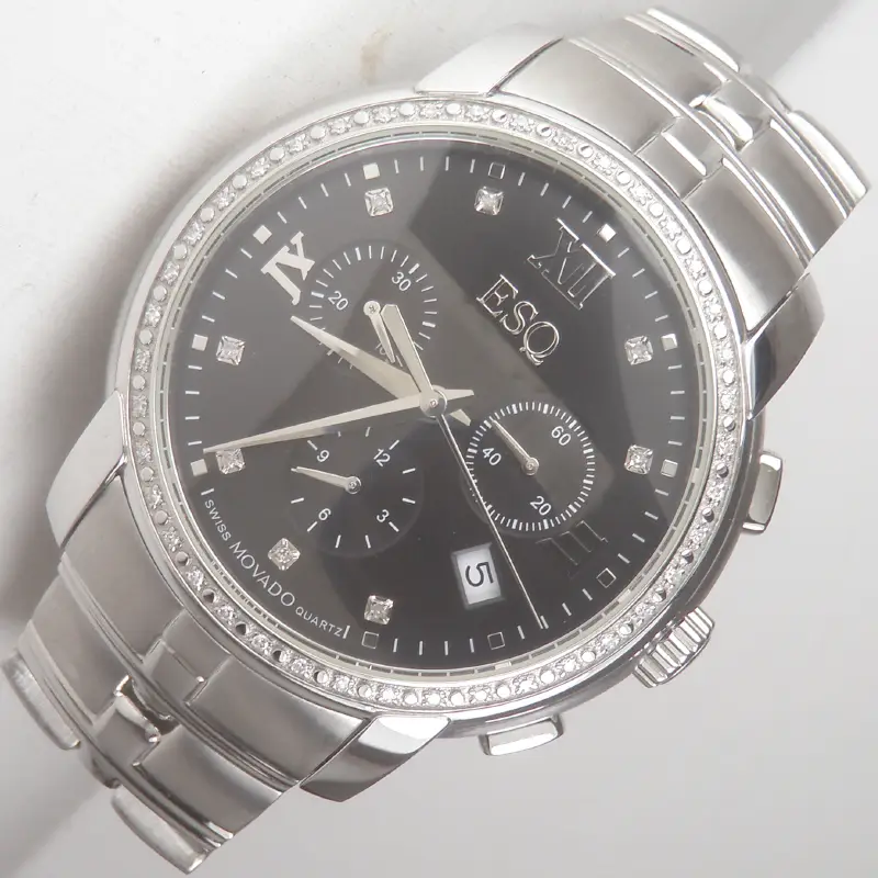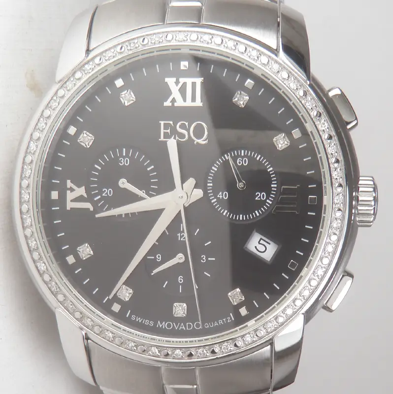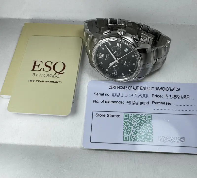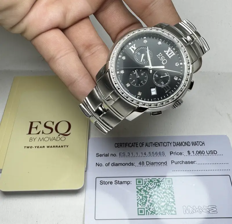 Đồng hồ ESQ Movado Chrono Diamond Quartz Unisex Watch Swiss Hàng chính hãng Thuỵ Sĩ. Nguyên zin 100% Đầy đủ Hộp sổ Thẻ zin Còn Mới Đẹp Long Lanh