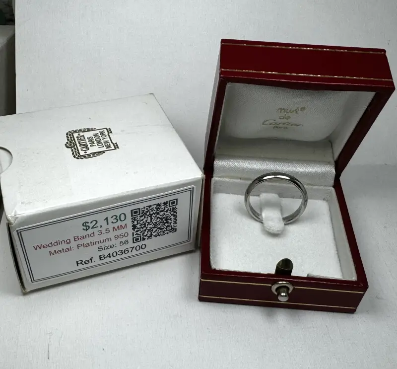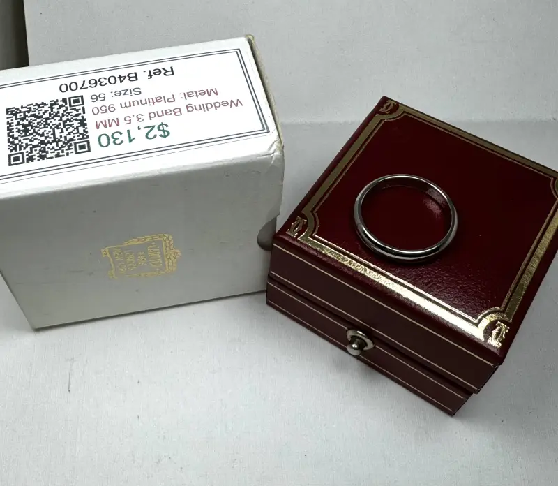 Nhẫn Cartier Platinum Band 3.5mm France Authentic Mới Đẹp Long Lanh không bị cấn móp gì hết và có Hộp Authentic của Hãng Cartier luôn nhé