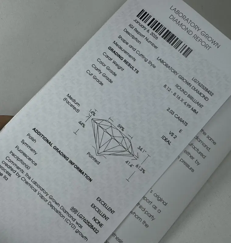 - Hàng LAB GROWN Diamond nặng 2,03 Carat : xuất sắc