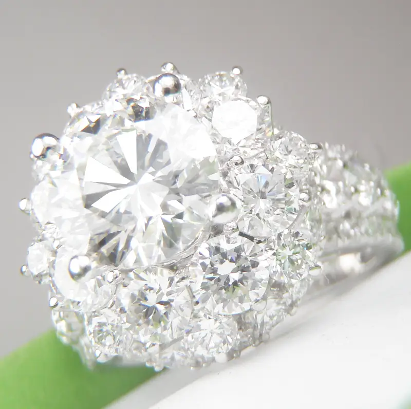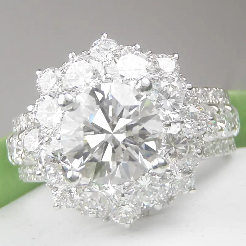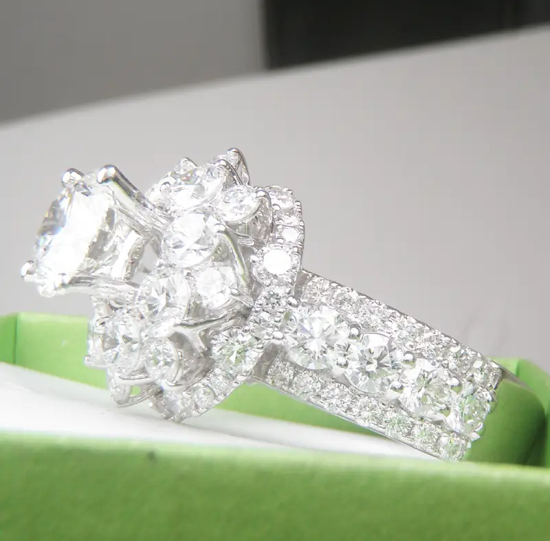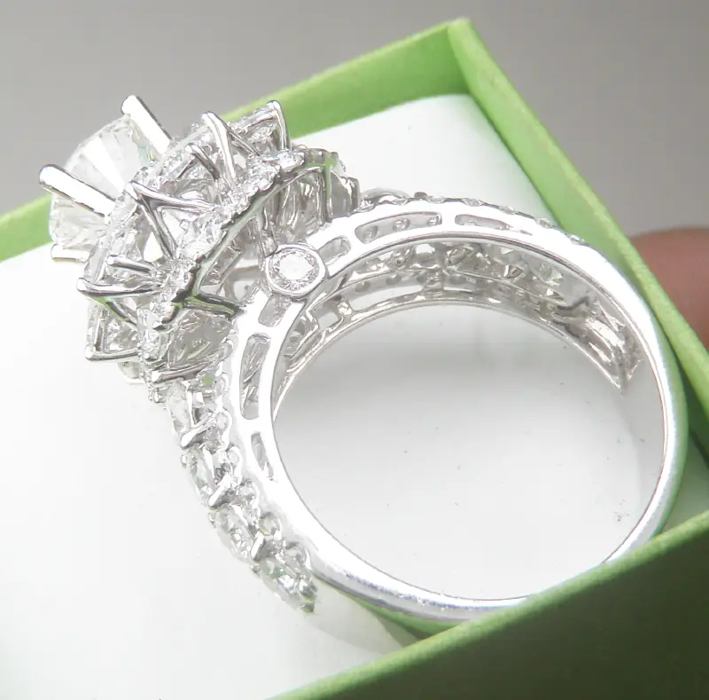 Nhẫn Nữ 14k Unique Halo Diamond CVD Ring Hàng sản xuất tại Á Châu Mới Long Lanh