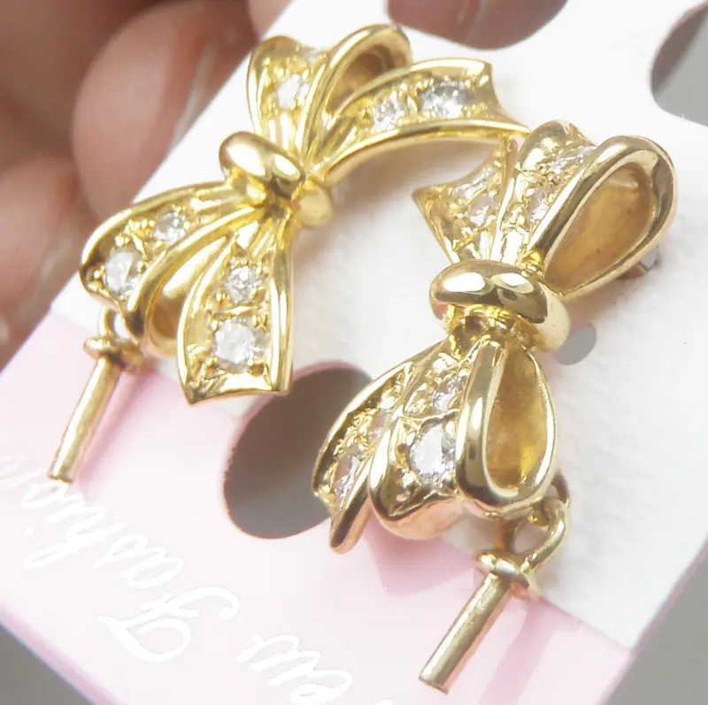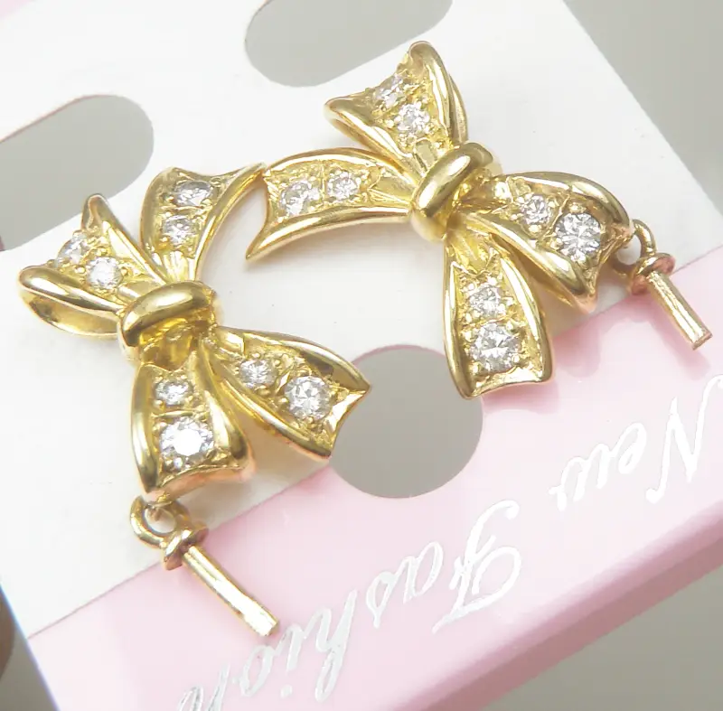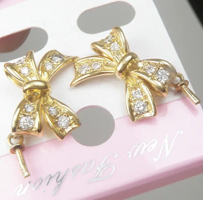 Đôi Hoa tai 18k Gold Diamond Bow Earrings Ladies France Hàng chính hãng Pháp sản xuất còn mới đẹp