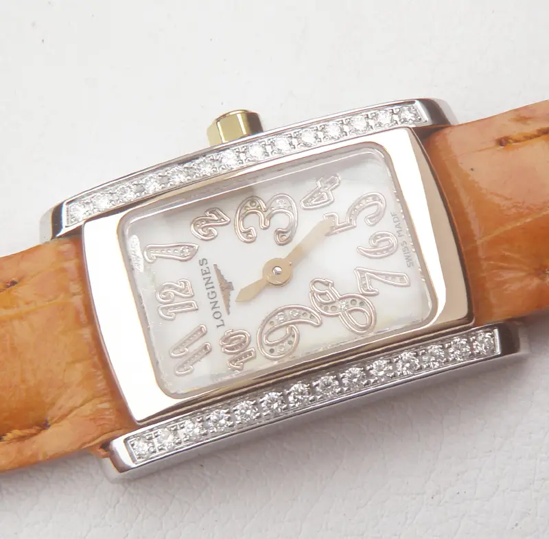 Đồng hồ Nữ Longines Dolce Vita Diamond 18K Bezel L5.158.5 Quartz hàng chính hãng Thụy Sĩ sản xuất. Nguyên zin trừ sợi dây da