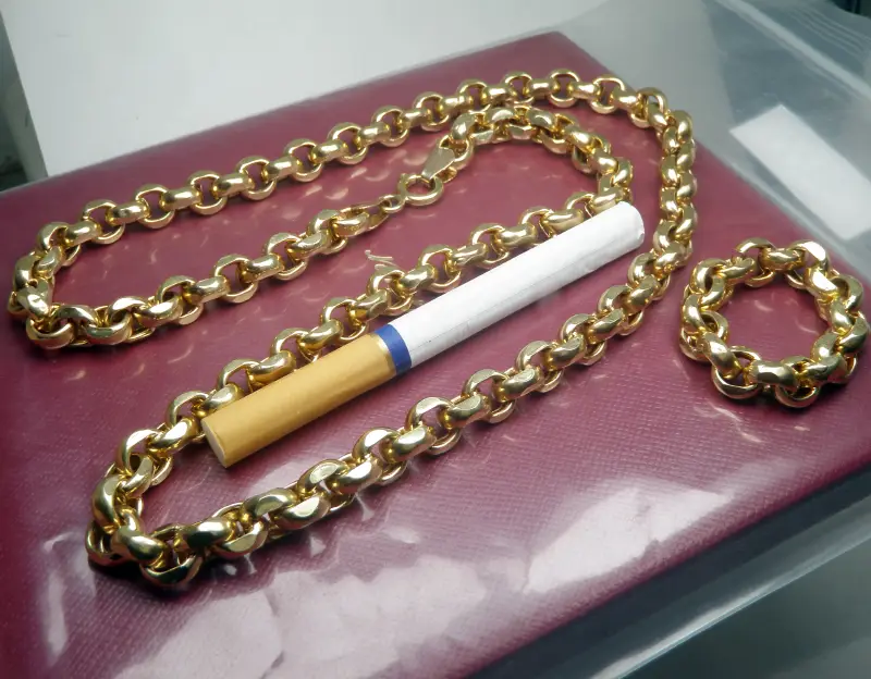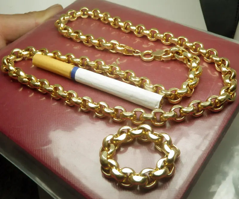 - Chất liệu bằng vàng 14k ( m phổ 2 điểm khoá và thân ra Au63,84 và Au59,97 ) kiểu to bự hầm hố quá Sang Luôn