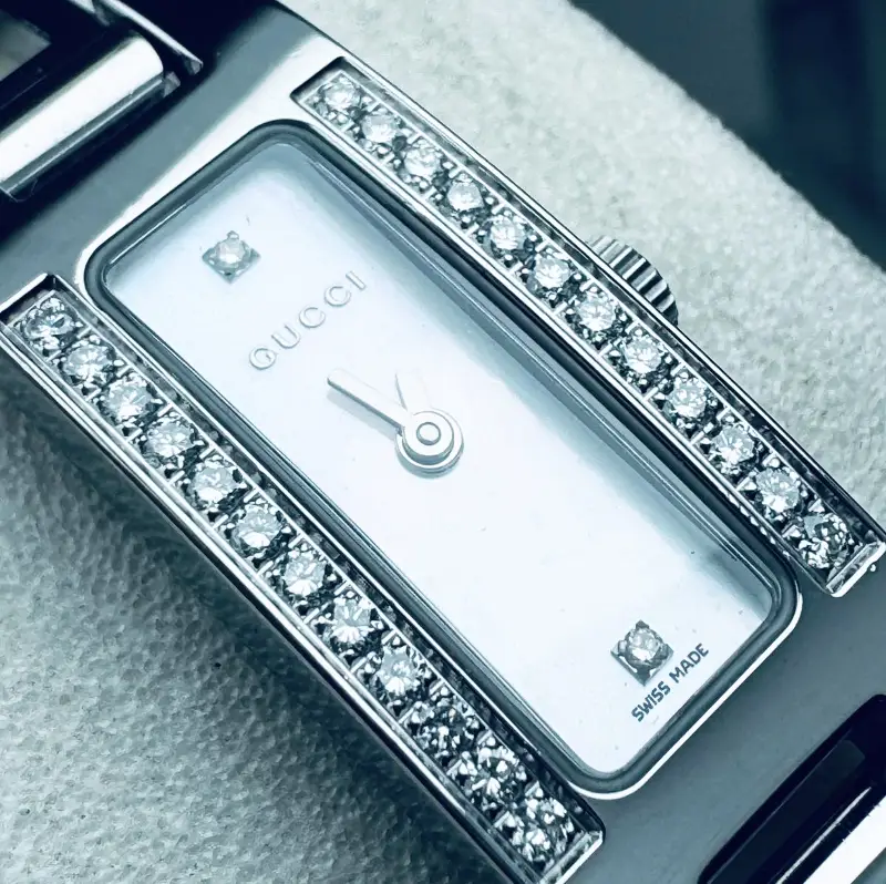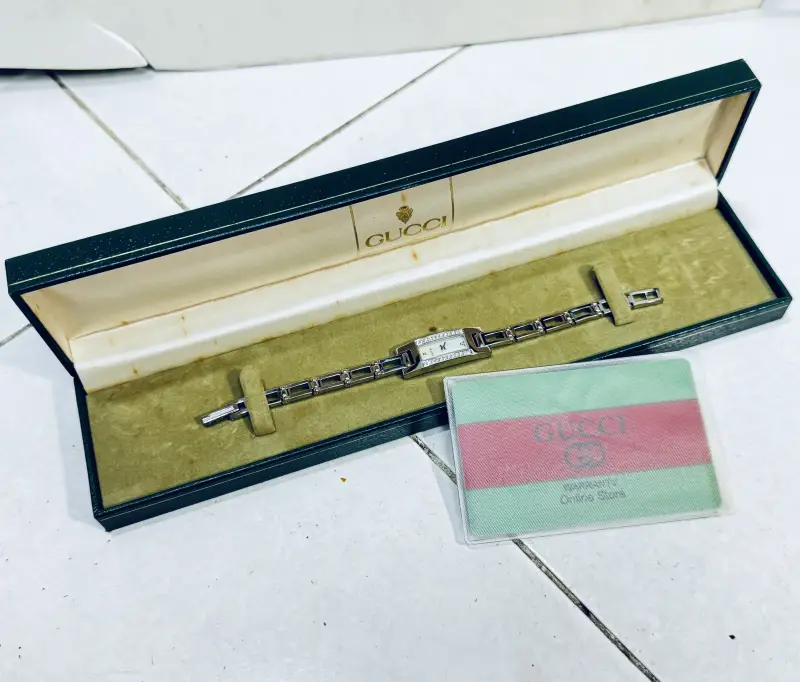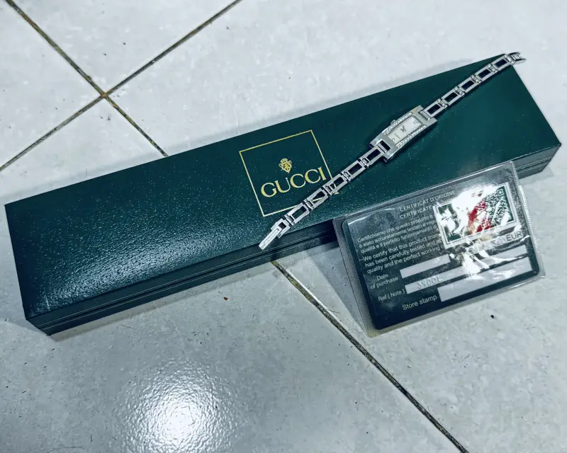 - Máy Gucci Thụy Sĩ sử dụng Pin zin theo đồng hồ : đang chạy tốt.