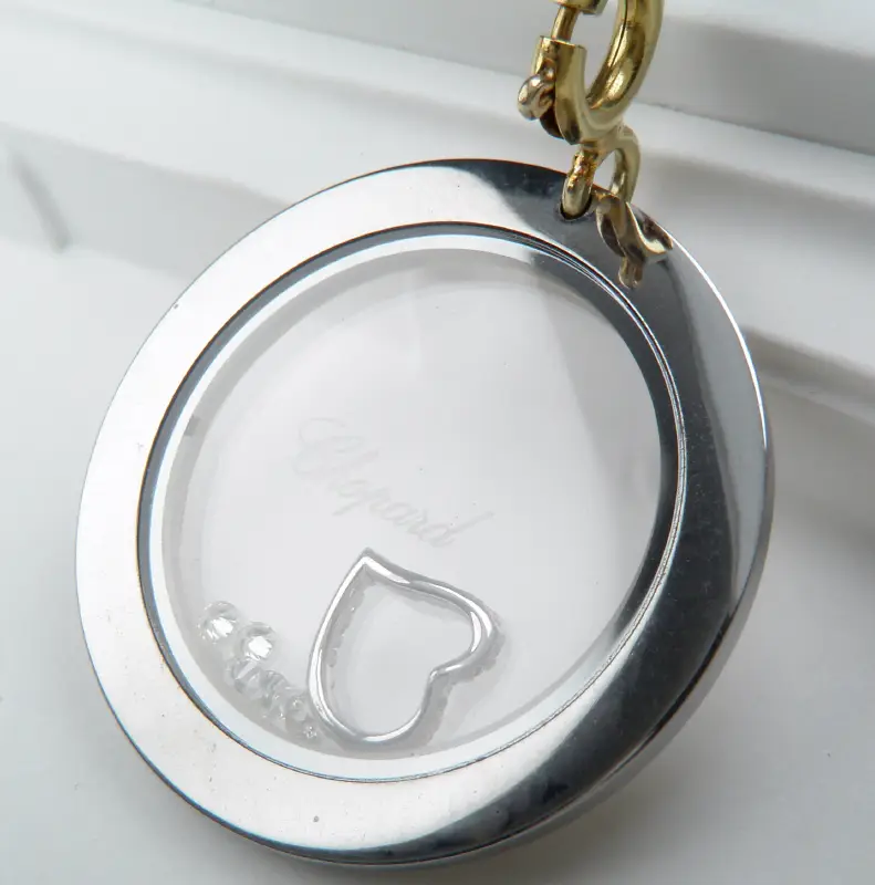Mặt Dây chuyền Chopard LUC Heart Happy Diamond 18k & Steel Pendant hàng chính hãng Thụy Sĩ.