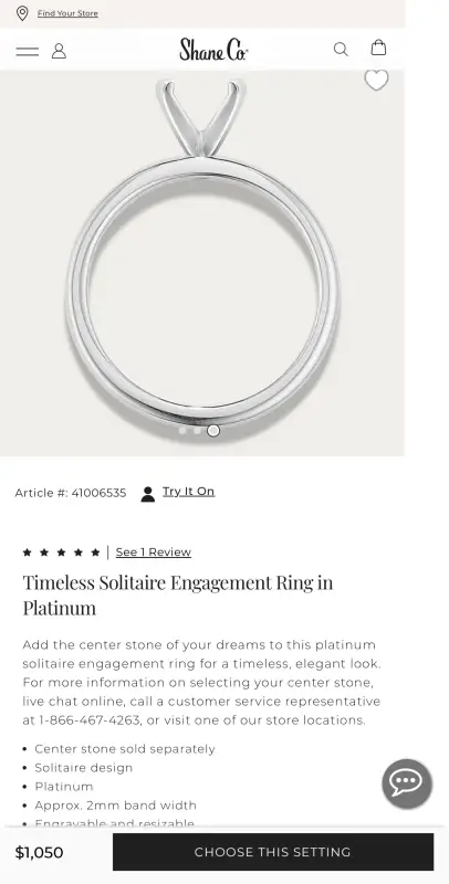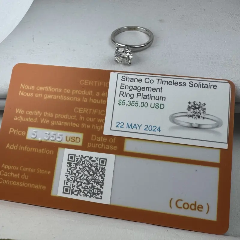 Nhẫn Nữ Shane Co Platinum 950 Diamond Solitaire Ring Ladies USA Hàng chính hãng Mỹ sản xuất, nguyên zin