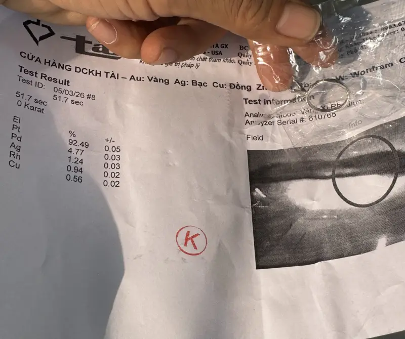 - Vỏ bằng Bạch kim La tin 950 đính 1 viên Kim Cương Thiên Nhiên 7ly38 x 7ly32 x 4,5 mm Loại khá đẹp Lung Linh Si – i1 Lên tay xem với mắt thường không thấy bệnh và nước khá Trắng ~ G - H rất chiếu rực lửa chói cả mắt