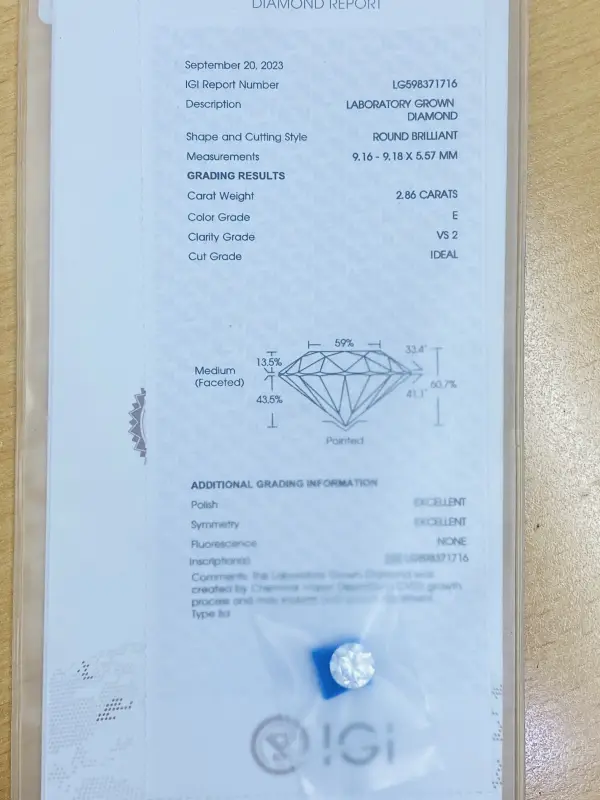 Viên Kim Cương CVD số đẹp 9Ly16 x 9Ly18 Trắng E vs2 có kiểm định của IGI