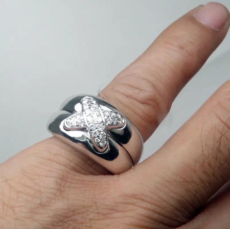 Nhẫn Chaumet 18k Diamond Liens de Band Ring Unisex So Italy hàng chính hãng Ý sản xuất. Nguyên zin 100% có Thẻ BH mua hàng zin, để m tìm rồi úp hình lên sau, cái này m lấy về để đeo Tết giờ không thấy cái thẻ đâu