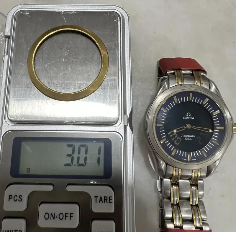 Stainless steel with solid gold bezel