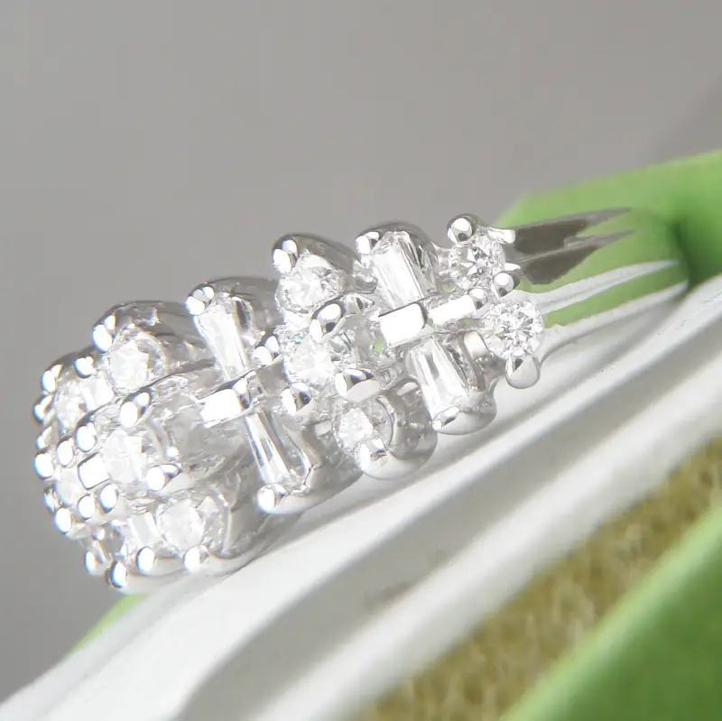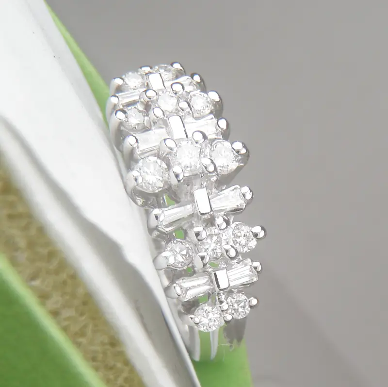 Gồm 13 viên 1Ly6 – 2Ly và 8 viên kim cương baguette dài 2Ly1 đến 2Ly2
