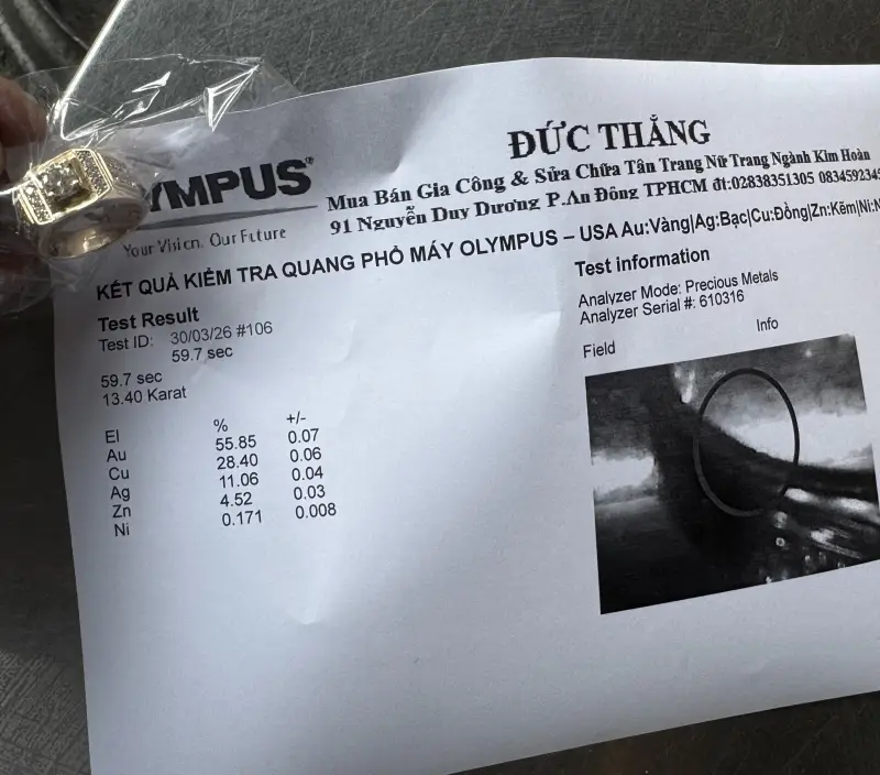 - Vô bằng vàng 14k ( Au55,85 ) đính 22 viên kim Cương Thiên Nhiên loại Sạch đẹp và nước khá Trắng vất chiếu Sáng rất Lửa Lấp Lánh
