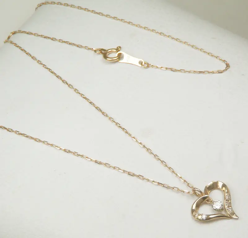 Dây chuyền Heart K18 Gold Diamond Pandent Necklace Unisex Lzs SG France hàng chính hãng của Pháp và Nhật sản xuất