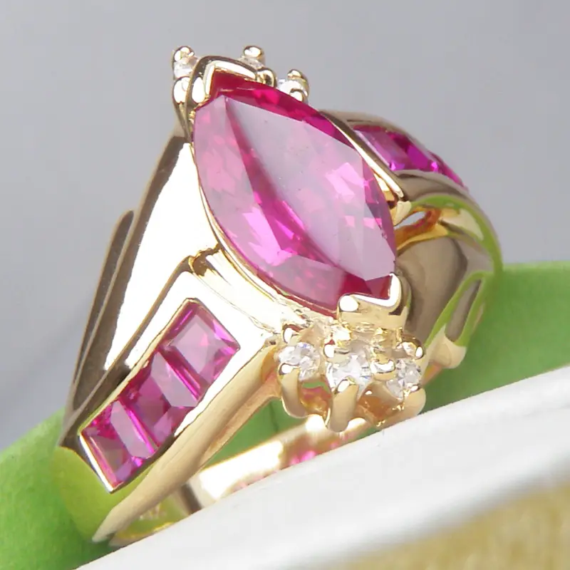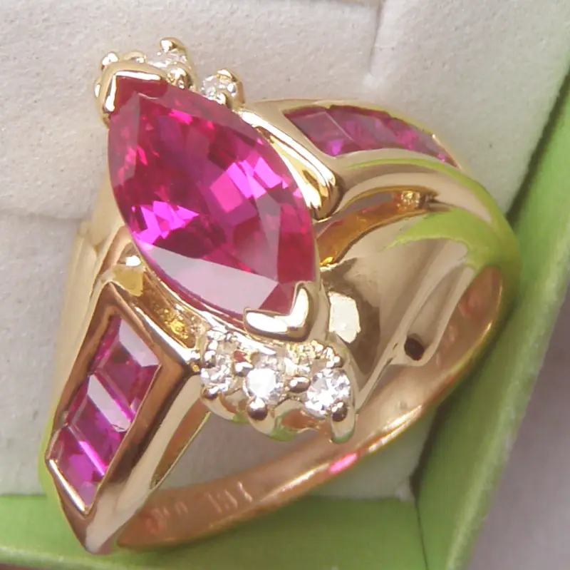 + phối với viên chủ đá Ruby hình hột dưa dài 10 x 5,1mm và 6 viên Ruby Vuông ~ 2Ly2