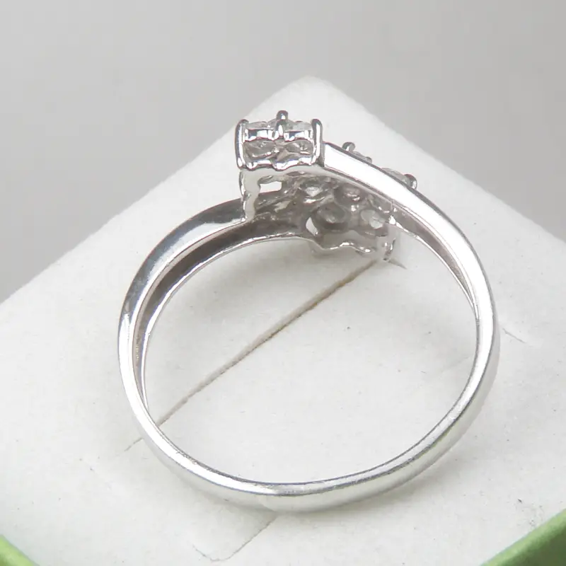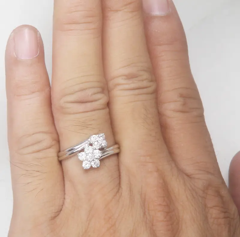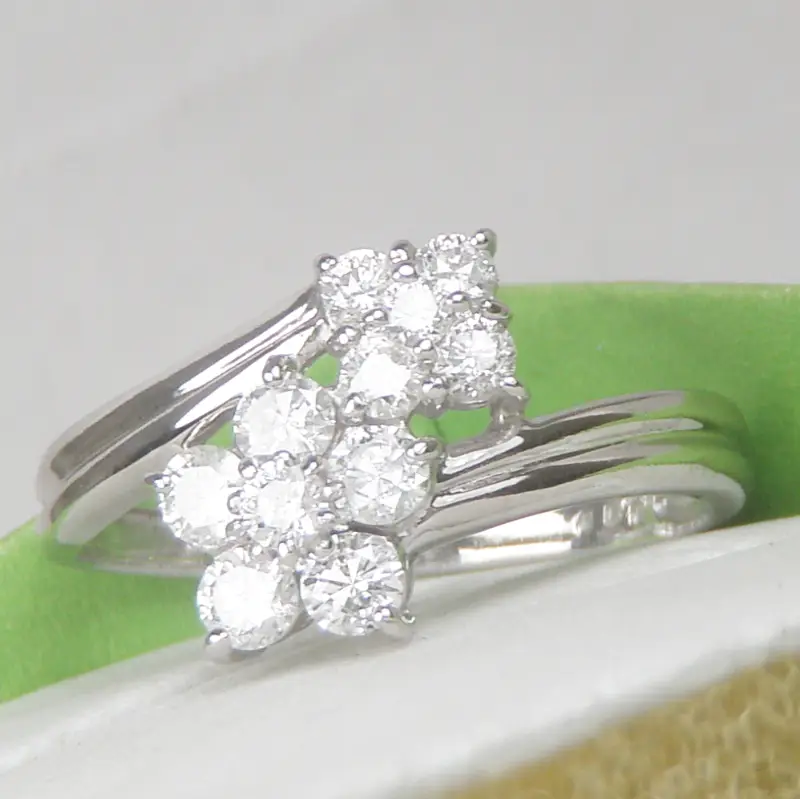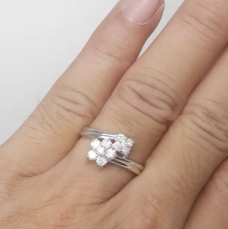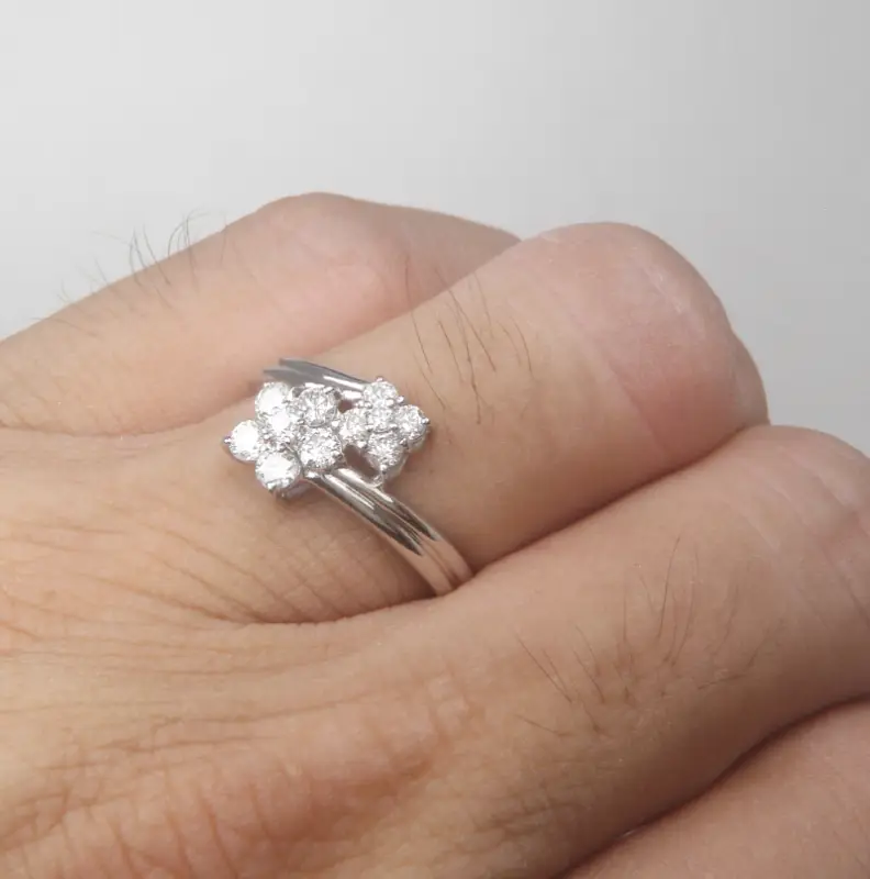 Nhẫn Nữ Bypass Two-Clsuter Diamond Platinum 900 Ring Ladies hàng chính hãng Pháp và Nhật sản xuất. Hàng đã sử dụng nhưng vẫn đẹp