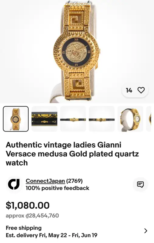 Đồng hồ Versace 18k Gold Plated 01747 Quartz Watch Hàng chính hãng Thụy Sĩ sản xuất. Nguyên zin 100% Rất Mới Đẹp