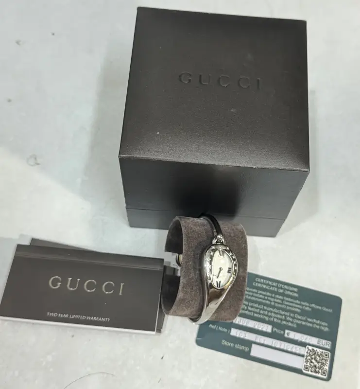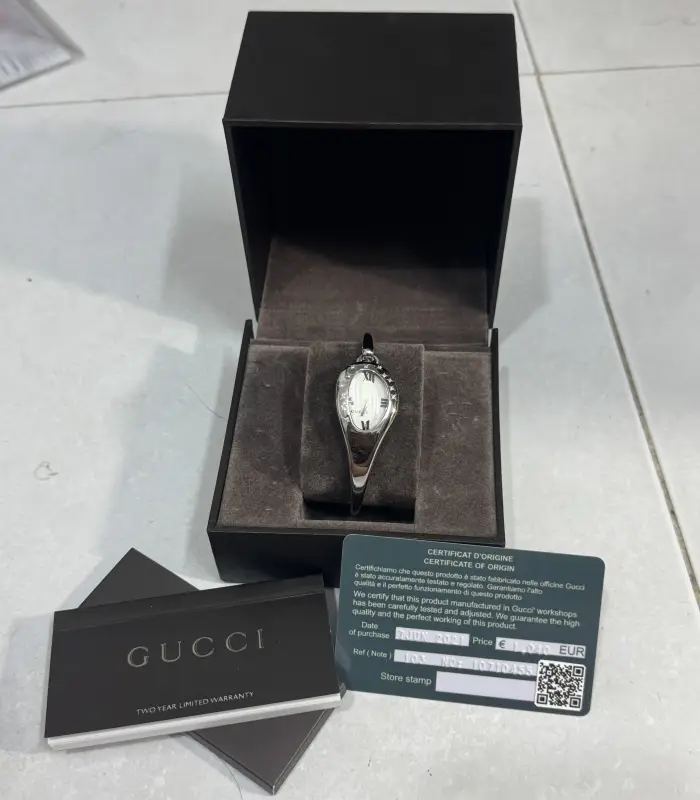 - Máy Gucci Thụy Sĩ sử dụng Pin zin theo đồng hồ : đang chạy tốt.